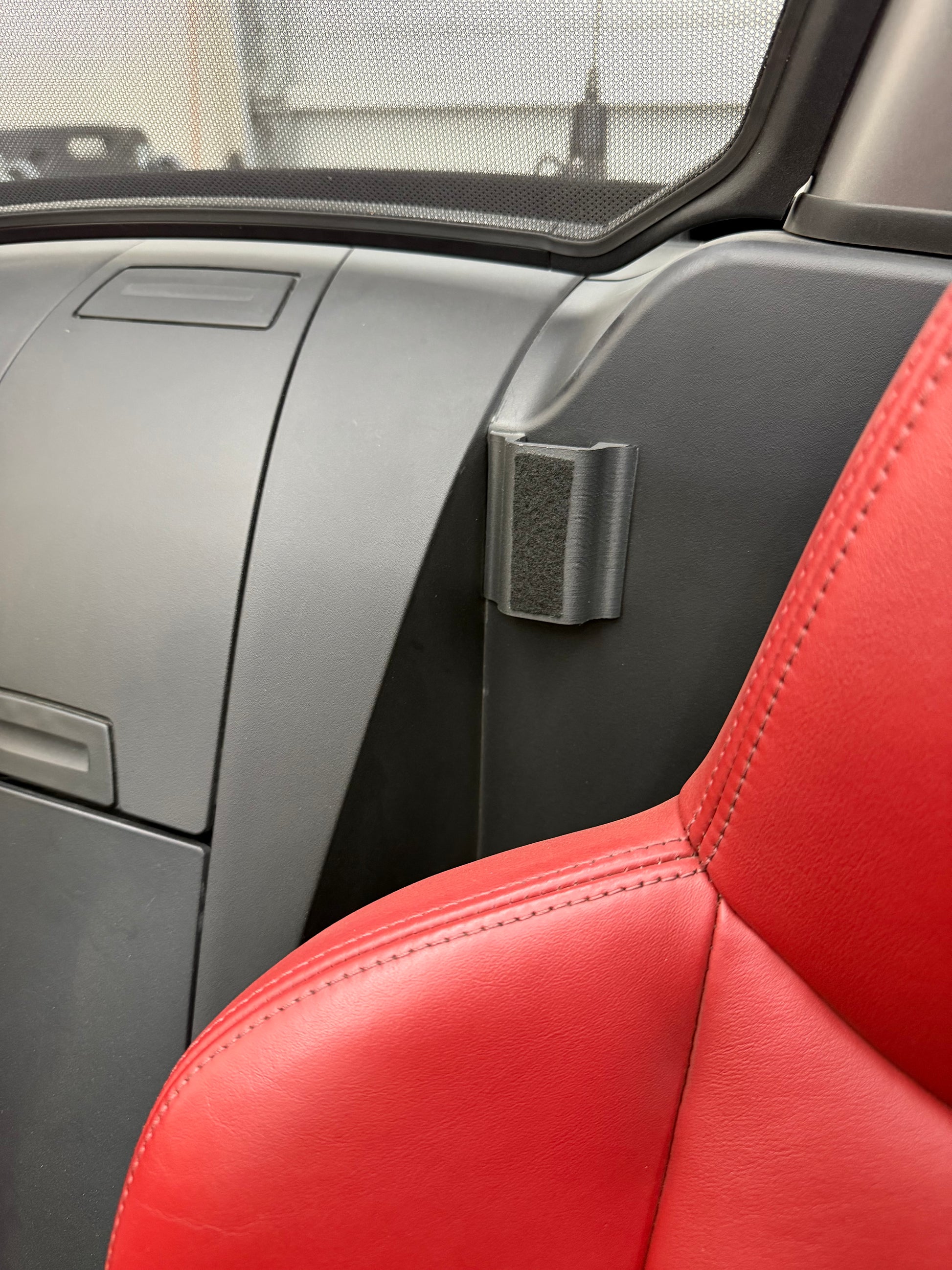 There are 2 parts available. For any BMW Z except G29 Z4, this part comes with 3M VHB adhesive tape and you can place the mount wherever you like. It is shown here in an E85 Z4 on the bulkhead by the driver's shoulder. My personal preference is actually to mount it on the passenger's shoulder as it is easer to reach over and adjust the volume on the radio while driving. For E89 Z4, placement would be approximately the same. For Z3, many customers choose to mount it centered on the bulkhead / subwoofer area.